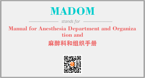 上述内容是“Manual for Anesthesia Department and Organization and”作为“MADOM”的缩写,解释为“麻醉科和组织手册”时的信息,以及英文缩略词MADOM所代表的英文单词,其对应的中文拼音、详细解释以及在英文中的流行度和相关分类、应用领域及应用示例等。