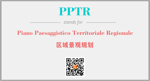 英文缩略词“PPTR”经常作为“Piano Paesaggistico Territoriale Regionale”的英文缩写来使用,中文表示:“区域景观规划”。本文将详细介绍英文缩写词PPTR所代表英文单词,其对应的中文拼音、详细解释以及在英语中的流行度。此外,还有关于缩略词PPTR的分类、应用领域及相关应用示例等。