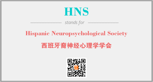 上述内容是“Hispanic Neuropsychological Society”作为“HNS”的缩写,解释为“西班牙裔神经心理学学会”时的信息,以及英文缩略词HNS所代表的英文单词,其对应的中文拼音、详细解释以及在英文中的流行度和相关分类、应用领域及应用示例等。