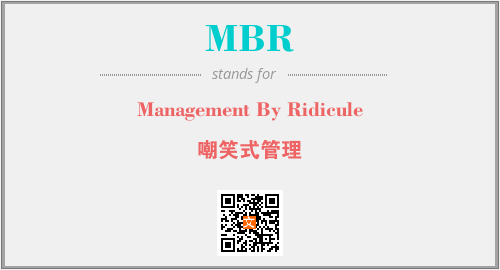 英文缩略词“MBR”经常作为“Management By Ridicule”的英文缩写来使用,中文表示:“嘲笑式管理”。本文将详细介绍英文缩写词MBR所代表英文单词,其对应的中文拼音、详细解释以及在英语中的流行度。此外,还有关于缩略词MBR的分类、应用领域及相关应用示例等。