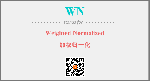 上述内容是“Weighted Normalized”作为“WN”的缩写,解释为“加权归一化”时的信息,以及英文缩略词WN所代表的英文单词,其对应的中文拼音、详细解释以及在英文中的流行度和相关分类、应用领域及应用示例等。