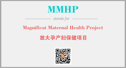英文缩略词“MMHP”经常作为“Magnificat Maternal Health Project”的英文缩写来使用,中文表示:“放大孕产妇保健项目”。本文将详细介绍英文缩写词MMHP所代表英文单词,其对应的中文拼音、详细解释以及在英语中的流行度。此外,还有关于缩略词MMHP的分类、应用领域及相关应用示例等。