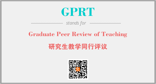 上述内容是“Graduate Peer Review of Teaching”作为“GPRT”的缩写,解释为“研究生教学同行评议”时的信息,以及英文缩略词GPRT所代表的英文单词,其对应的中文拼音、详细解释以及在英文中的流行度和相关分类、应用领域及应用示例等。