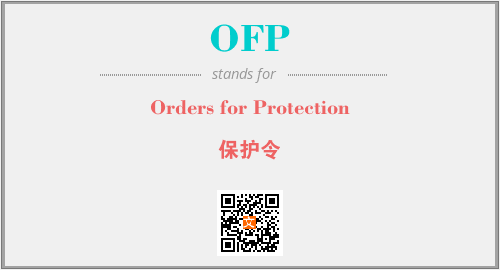 上述内容是“Orders for Protection”作为“OFP”的缩写,解释为“保护令”时的信息,以及英文缩略词OFP所代表的英文单词,其对应的中文拼音、详细解释以及在英文中的流行度和相关分类、应用领域及应用示例等。