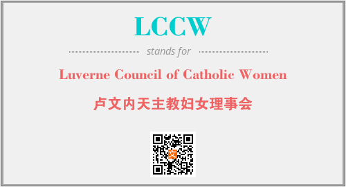 上述内容是“Luverne Council of Catholic Women”作为“LCCW”的缩写,解释为“卢文内天主教妇女理事会”时的信息,以及英文缩略词LCCW所代表的英文单词,其对应的中文拼音、详细解释以及在英文中的流行度和相关分类、应用领域及应用示例等。