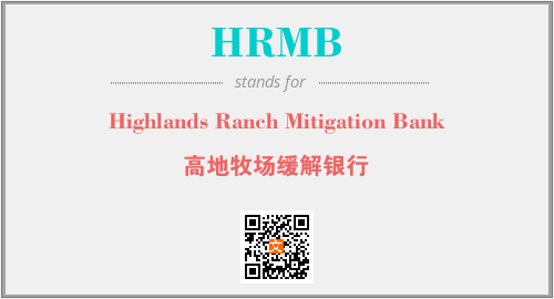 英文缩略词“HRMB”经常作为“Highlands Ranch Mitigation Bank”的英文缩写来使用,中文表示:“高地牧场缓解银行”。本文将详细介绍英文缩写词HRMB所代表英文单词,其对应的中文拼音、详细解释以及在英语中的流行度。此外,还有关于缩略词HRMB的分类、应用领域及相关应用示例等。