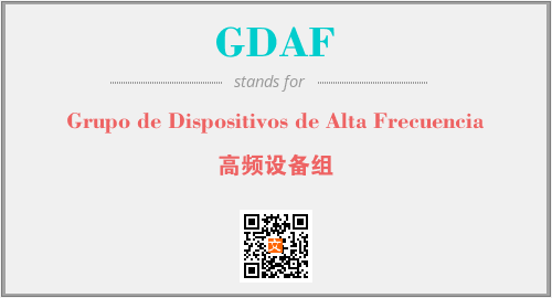 上述内容是“Grupo de Dispositivos de Alta Frecuencia”作为“GDAF”的缩写,解释为“高频设备组”时的信息,以及英文缩略词GDAF所代表的英文单词,其对应的中文拼音、详细解释以及在英文中的流行度和相关分类、应用领域及应用示例等。