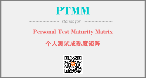 英文缩略词“PTMM”经常作为“Personal Test Maturity Matrix”的英文缩写来使用,中文表示:“个人测试成熟度矩阵”。本文将详细介绍英文缩写词PTMM所代表英文单词,其对应的中文拼音、详细解释以及在英语中的流行度。此外,还有关于缩略词PTMM的分类、应用领域及相关应用示例等。
