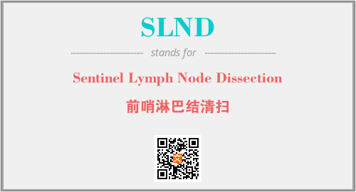 上述内容是“Sentinel Lymph Node Dissection”作为“SLND”的缩写,解释为“前哨淋巴结清扫”时的信息,以及英文缩略词SLND所代表的英文单词,其对应的中文拼音、详细解释以及在英文中的流行度和相关分类、应用领域及应用示例等。