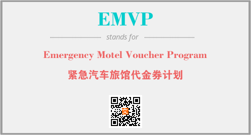 上述内容是“Emergency Motel Voucher Program”作为“EMVP”的缩写,解释为“紧急汽车旅馆代金券计划”时的信息,以及英文缩略词EMVP所代表的英文单词,其对应的中文拼音、详细解释以及在英文中的流行度和相关分类、应用领域及应用示例等。