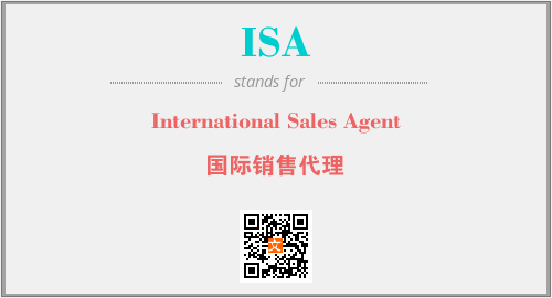 英文缩略词“ISA”经常作为“International Sales Agent”的英文缩写来使用,中文表示:“国际销售代理”。本文将详细介绍英文缩写词ISA所代表英文单词,其对应的中文拼音、详细解释以及在英语中的流行度。此外,还有关于缩略词ISA的分类、应用领域及相关应用示例等。