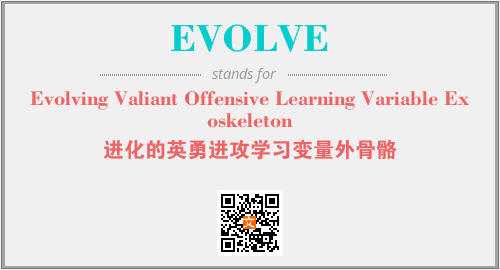 以上为Evolving Valiant Offensive Learning Variable Exoskeleton英文缩略词EVOLVE的中文解释,以及该英文缩写在英语的流行度、分类和应用领域方面的信息。