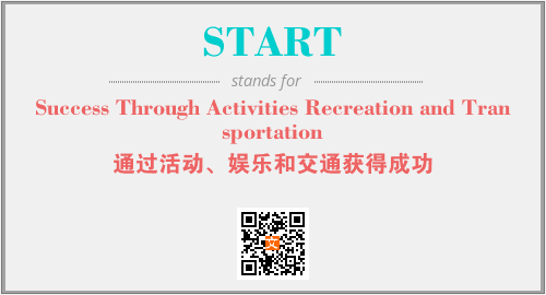 上述内容是“Success Through Activities Recreation and Transportation”作为“START”的缩写,解释为“通过活动、娱乐和交通获得成功”时的信息,以及英文缩略词START所代表的英文单词,其对应的中文拼音、详细解释以及在英文中的流行度和相关分类、应用领域及应用示例等。