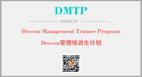 以上为Descon Management Trainee Program英文缩略词DMTP的中文解释,以及该英文缩写在英语的流行度、分类和应用领域方面的信息。