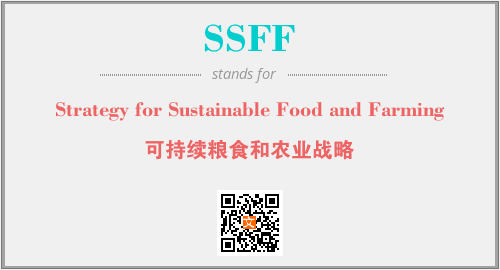 上述内容是“Strategy for Sustainable Food and Farming”作为“SSFF”的缩写,解释为“可持续粮食和农业战略”时的信息,以及英文缩略词SSFF所代表的英文单词,其对应的中文拼音、详细解释以及在英文中的流行度和相关分类、应用领域及应用示例等。