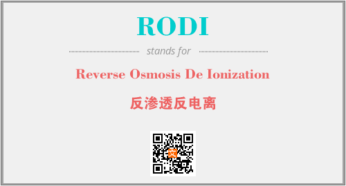 上述内容是“Reverse Osmosis De Ionization”作为“RODI”的缩写,解释为“反渗透反电离”时的信息,以及英文缩略词RODI所代表的英文单词,其对应的中文拼音、详细解释以及在英文中的流行度和相关分类、应用领域及应用示例等。