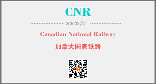 上述内容是“Canadian National Railway”作为“CNR”的缩写,解释为“加拿大国家铁路”时的信息,以及英文缩略词CNR所代表的英文单词,其对应的中文拼音、详细解释以及在英文中的流行度和相关分类、应用领域及应用示例等。