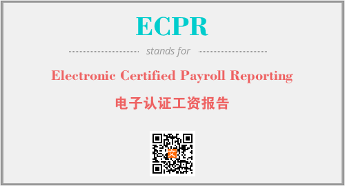 英文缩略词“ECPR”经常作为“Electronic Certified Payroll Reporting”的英文缩写来使用,中文表示:“电子认证工资报告”。本文将详细介绍英文缩写词ECPR所代表英文单词,其对应的中文拼音、详细解释以及在英语中的流行度。此外,还有关于缩略词ECPR的分类、应用领域及相关应用示例等。