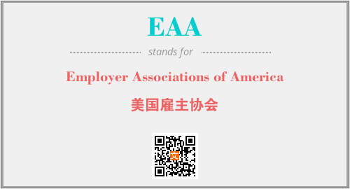 上述内容是“Employer Associations of America”作为“EAA”的缩写,解释为“美国雇主协会”时的信息,以及英文缩略词EAA所代表的英文单词,其对应的中文拼音、详细解释以及在英文中的流行度和相关分类、应用领域及应用示例等。