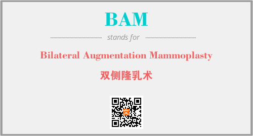 英文缩略词“BAM”经常作为“Bilateral Augmentation Mammoplasty”的英文缩写来使用,中文表示:“双侧隆乳术”。本文将详细介绍英文缩写词BAM所代表英文单词,其对应的中文拼音、详细解释以及在英语中的流行度。此外,还有关于缩略词BAM的分类、应用领域及相关应用示例等。