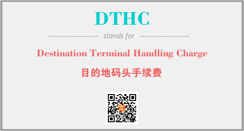英文缩略词“DTHC”经常作为“Destination Terminal Handling Charge”的英文缩写来使用,中文表示:“目的地码头手续费”。本文将详细介绍英文缩写词DTHC所代表英文单词,其对应的中文拼音、详细解释以及在英语中的流行度。此外,还有关于缩略词DTHC的分类、应用领域及相关应用示例等。