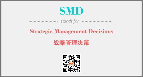 上述内容是“Strategic Management Decisions”作为“SMD”的缩写,解释为“战略管理决策”时的信息,以及英文缩略词SMD所代表的英文单词,其对应的中文拼音、详细解释以及在英文中的流行度和相关分类、应用领域及应用示例等。