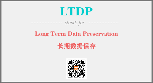 英文缩略词“LTDP”经常作为“Long Term Data Preservation”的英文缩写来使用,中文表示:“长期数据保存”。本文将详细介绍英文缩写词LTDP所代表英文单词,其对应的中文拼音、详细解释以及在英语中的流行度。此外,还有关于缩略词LTDP的分类、应用领域及相关应用示例等。