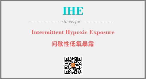 上述内容是“Intermittent Hypoxic Exposure”作为“IHE”的缩写,解释为“间歇性低氧暴露”时的信息,以及英文缩略词IHE所代表的英文单词,其对应的中文拼音、详细解释以及在英文中的流行度和相关分类、应用领域及应用示例等。