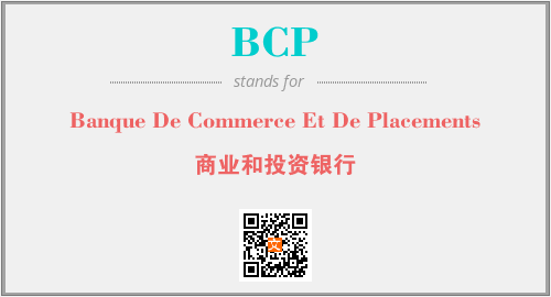 上述内容是“Banque De Commerce Et De Placements”作为“BCP”的缩写,解释为“商业和投资银行”时的信息,以及英文缩略词BCP所代表的英文单词,其对应的中文拼音、详细解释以及在英文中的流行度和相关分类、应用领域及应用示例等。