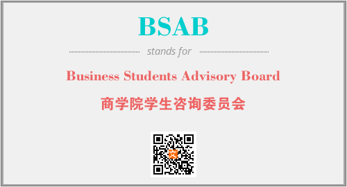 英文缩略词“BSAB”经常作为“Business Students Advisory Board”的英文缩写来使用,中文表示:“商学院学生咨询委员会”。本文将详细介绍英文缩写词BSAB所代表英文单词,其对应的中文拼音、详细解释以及在英语中的流行度。此外,还有关于缩略词BSAB的分类、应用领域及相关应用示例等。