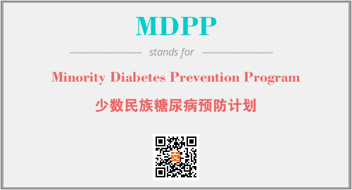 上述内容是“Minority Diabetes Prevention Program”作为“MDPP”的缩写,解释为“少数民族糖尿病预防计划”时的信息,以及英文缩略词MDPP所代表的英文单词,其对应的中文拼音、详细解释以及在英文中的流行度和相关分类、应用领域及应用示例等。
