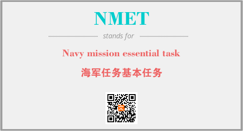 以上为Navy mission essential task英文缩略词NMET的中文解释,以及该英文缩写在英语的流行度、分类和应用领域方面的信息。