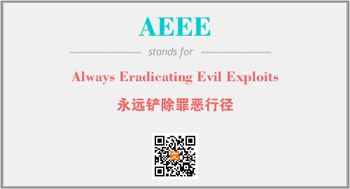 上述内容是“Always Eradicating Evil Exploits”作为“AEEE”的缩写,解释为“永远铲除罪恶行径”时的信息,以及英文缩略词AEEE所代表的英文单词,其对应的中文拼音、详细解释以及在英文中的流行度和相关分类、应用领域及应用示例等。