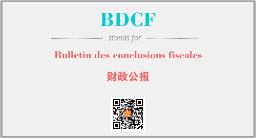 上述内容是“Bulletin des conclusions fiscales”作为“BDCF”的缩写,解释为“财政公报”时的信息,以及英文缩略词BDCF所代表的英文单词,其对应的中文拼音、详细解释以及在英文中的流行度和相关分类、应用领域及应用示例等。