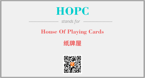英文缩略词“HOPC”经常作为“House Of Playing Cards”的英文缩写来使用,中文表示:“纸牌屋”。本文将详细介绍英文缩写词HOPC所代表英文单词,其对应的中文拼音、详细解释以及在英语中的流行度。此外,还有关于缩略词HOPC的分类、应用领域及相关应用示例等。