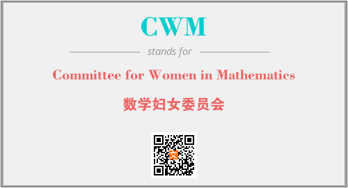 英文缩略词“CWM”经常作为“Committee for Women in Mathematics”的英文缩写来使用,中文表示:“数学妇女委员会”。本文将详细介绍英文缩写词CWM所代表英文单词,其对应的中文拼音、详细解释以及在英语中的流行度。此外,还有关于缩略词CWM的分类、应用领域及相关应用示例等。
