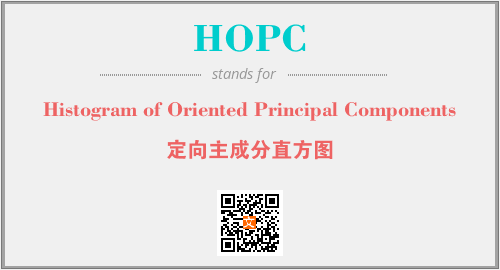 上述内容是“Histogram of Oriented Principal Components”作为“HOPC”的缩写,解释为“定向主成分直方图”时的信息,以及英文缩略词HOPC所代表的英文单词,其对应的中文拼音、详细解释以及在英文中的流行度和相关分类、应用领域及应用示例等。