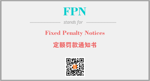 英文缩略词“FPN”经常作为“Fixed Penalty Notices”的英文缩写来使用,中文表示:“定额罚款通知书”。本文将详细介绍英文缩写词FPN所代表英文单词,其对应的中文拼音、详细解释以及在英语中的流行度。此外,还有关于缩略词FPN的分类、应用领域及相关应用示例等。