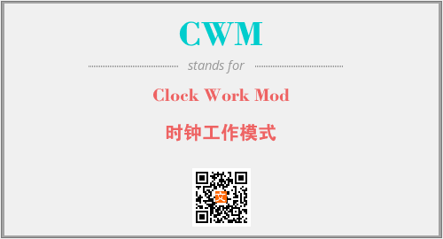 英文缩略词“CWM”经常作为“Clock Work Mod”的英文缩写来使用,中文表示:“时钟工作模式”。本文将详细介绍英文缩写词CWM所代表英文单词,其对应的中文拼音、详细解释以及在英语中的流行度。此外,还有关于缩略词CWM的分类、应用领域及相关应用示例等。