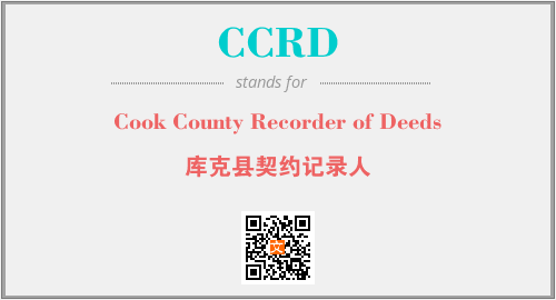 英文缩略词“CCRD”经常作为“Cook County Recorder of Deeds”的英文缩写来使用,中文表示:“库克县契约记录人”。本文将详细介绍英文缩写词CCRD所代表英文单词,其对应的中文拼音、详细解释以及在英语中的流行度。此外,还有关于缩略词CCRD的分类、应用领域及相关应用示例等。