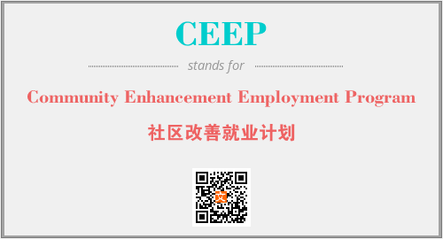 上述内容是“Community Enhancement Employment Program”作为“CEEP”的缩写,解释为“社区改善就业计划”时的信息,以及英文缩略词CEEP所代表的英文单词,其对应的中文拼音、详细解释以及在英文中的流行度和相关分类、应用领域及应用示例等。