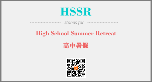 英文缩略词“HSSR”经常作为“High School Summer Retreat”的英文缩写来使用,中文表示:“高中暑假”。本文将详细介绍英文缩写词HSSR所代表英文单词,其对应的中文拼音、详细解释以及在英语中的流行度。此外,还有关于缩略词HSSR的分类、应用领域及相关应用示例等。