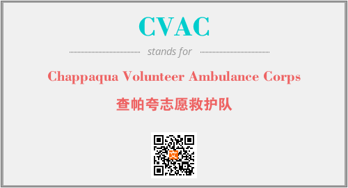 上述内容是“Chappaqua Volunteer Ambulance Corps”作为“CVAC”的缩写,解释为“查帕夸志愿救护队”时的信息,以及英文缩略词CVAC所代表的英文单词,其对应的中文拼音、详细解释以及在英文中的流行度和相关分类、应用领域及应用示例等。