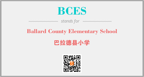 上述内容是“Ballard County Elementary School”作为“BCES”的缩写,解释为“巴拉德县小学”时的信息,以及英文缩略词BCES所代表的英文单词,其对应的中文拼音、详细解释以及在英文中的流行度和相关分类、应用领域及应用示例等。