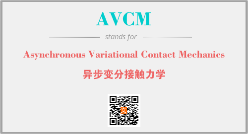 上述内容是“Asynchronous Variational Contact Mechanics”作为“AVCM”的缩写,解释为“异步变分接触力学”时的信息,以及英文缩略词AVCM所代表的英文单词,其对应的中文拼音、详细解释以及在英文中的流行度和相关分类、应用领域及应用示例等。