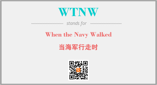 上述内容是“When the Navy Walked”作为“WTNW”的缩写,解释为“当海军行走时”时的信息,以及英文缩略词WTNW所代表的英文单词,其对应的中文拼音、详细解释以及在英文中的流行度和相关分类、应用领域及应用示例等。