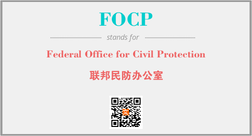 上述内容是“Federal Office for Civil Protection”作为“FOCP”的缩写,解释为“联邦民防办公室”时的信息,以及英文缩略词FOCP所代表的英文单词,其对应的中文拼音、详细解释以及在英文中的流行度和相关分类、应用领域及应用示例等。
