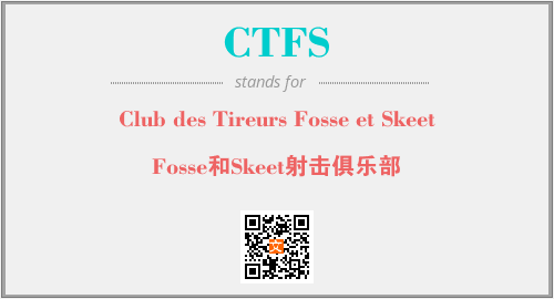 英文缩略词“CTFS”经常作为“Club des Tireurs Fosse et Skeet”的英文缩写来使用,中文表示:“Fosse和Skeet射击俱乐部”。本文将详细介绍英文缩写词CTFS所代表英文单词,其对应的中文拼音、详细解释以及在英语中的流行度。此外,还有关于缩略词CTFS的分类、应用领域及相关应用示例等。