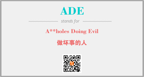 英文缩略词“ADE”经常作为“A**holes Doing Evil”的英文缩写来使用,中文表示:“做坏事的人”。本文将详细介绍英文缩写词ADE所代表英文单词,其对应的中文拼音、详细解释以及在英语中的流行度。此外,还有关于缩略词ADE的分类、应用领域及相关应用示例等。