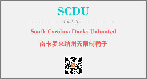 以上为South Carolina Ducks Unlimited英文缩略词SCDU的中文解释,以及该英文缩写在英语的流行度、分类和应用领域方面的信息。